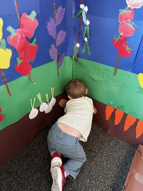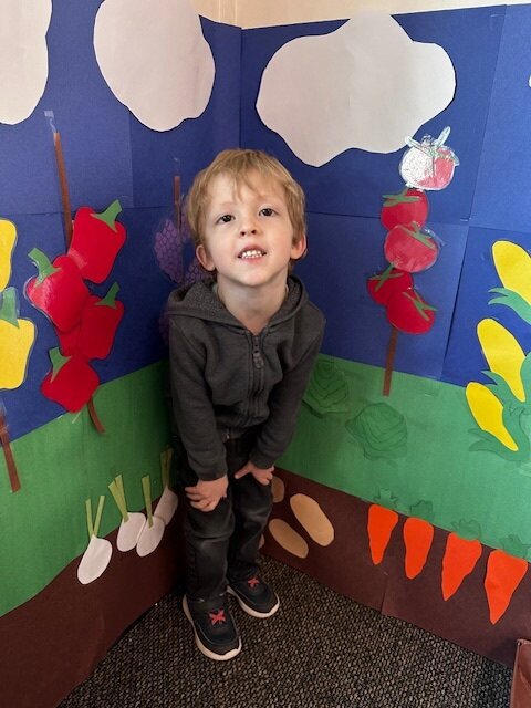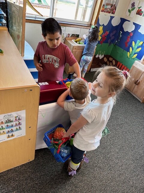 Children eagerly anticipated the dramatic play, which transformed into a garden/farm store. On the day of the store opening, they listened attentively during circle time to learn how to play, because we learn through play.