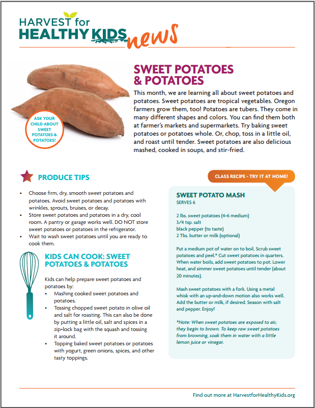 Every month the menu features a different fruit or vegetable. Check out the tip sheets here. Learn more here and sign up for the newsletter with Harvest for Healthy Kids.